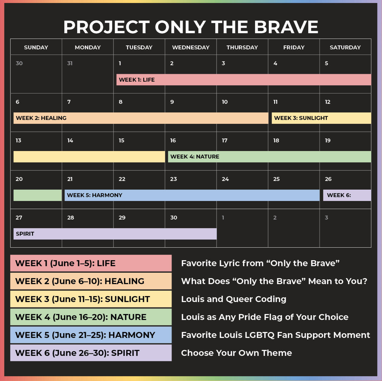 Hello everyone!! As pride month approaches, we wanted to make it a special celebration by helping “Only The Brave” chart. Alongside that, we wanted to do something with the amazing writers of this fandom. Since a fic fest would be too short notice, we thought a drabble fest could be the next best thing.